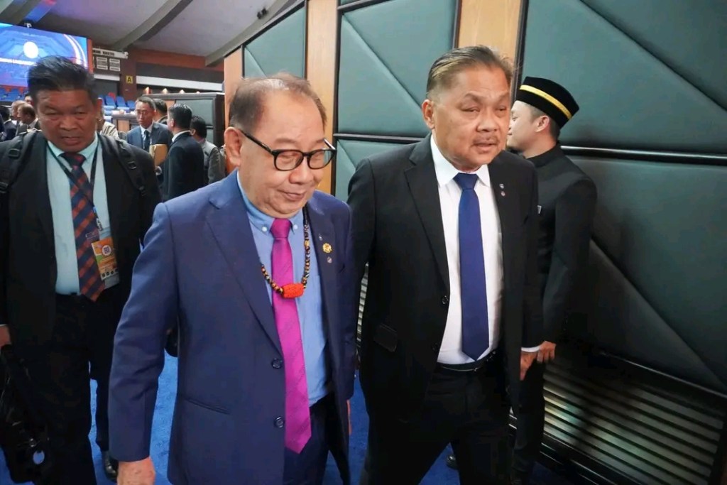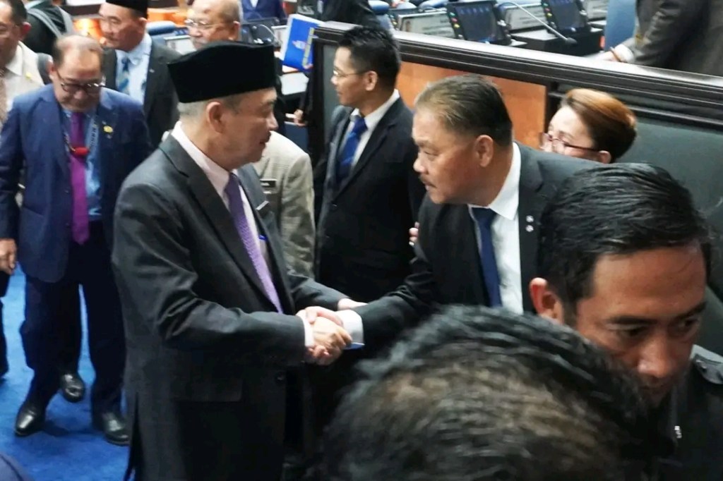 Pembantu Menteri Kerja Raya Sabah merangkap Ahli Dewan Undangan Negeri DUN Bingkor YB Datuk Robert Tawik sempat bersalaman dengan YAB Datuk Seri Panglima Hj Hajiji Hj Noor Ketua Menteri Sabah selesai Mesyuarat Ketiga Penggal Ke-4 Dewan Undangan Negeri Sabah Ke-16 petang tadi.